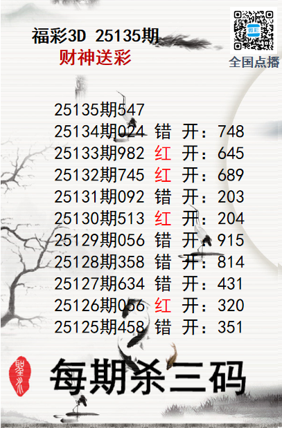 上一篇:福彩3D25135期分析师小鲨鱼杀号图精选