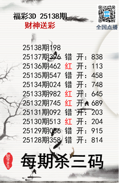 上一篇:福彩3D25138期分析师小鲨鱼杀号图精选