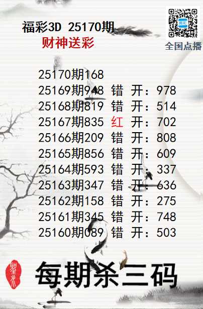 上一篇:福彩3D25170期分析师小鲨鱼杀号图精选