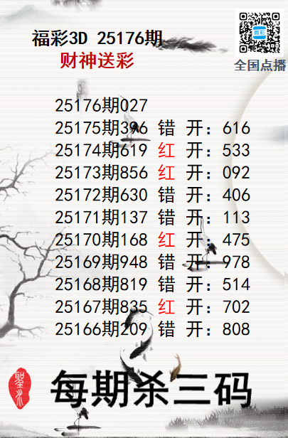 上一篇:福彩3D25176期分析师小鲨鱼杀号图精选