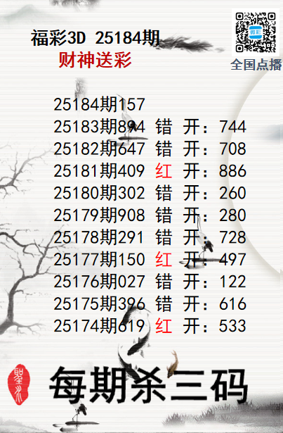 上一篇:福彩3D25184期分析师小鲨鱼杀号图精选