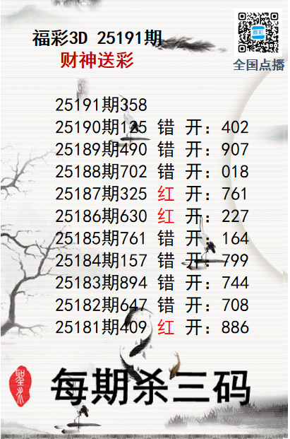 上一篇:福彩3D25191期分析师小鲨鱼杀号图精选