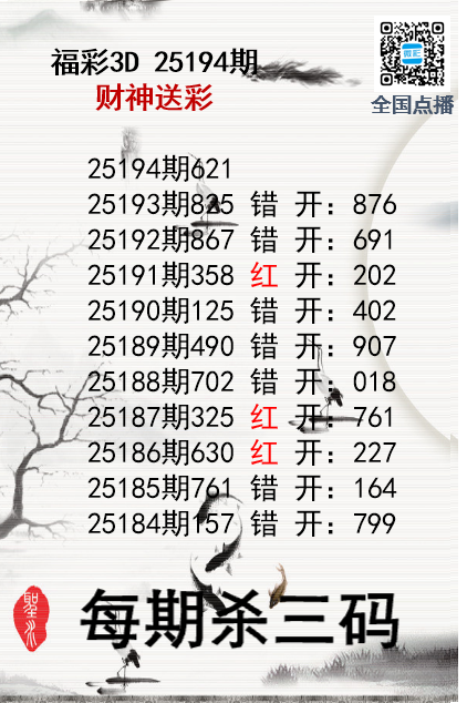上一篇:福彩3D25194期分析师小鲨鱼杀号图精选