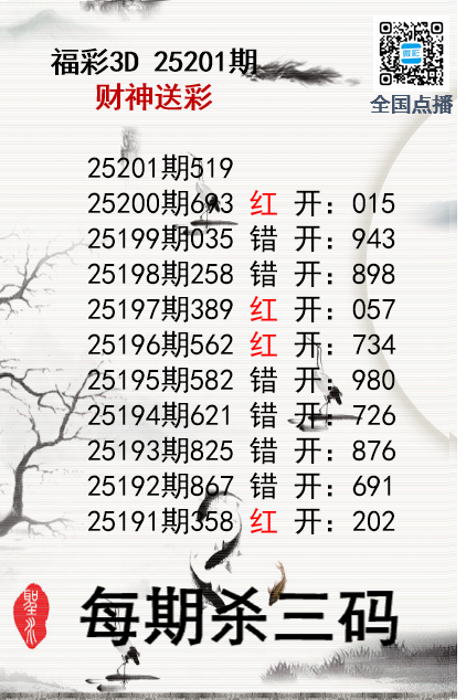 上一篇:福彩3D25201期分析师小鲨鱼杀号图精选