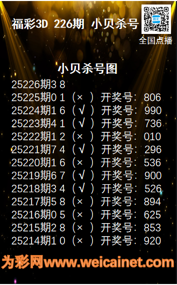 下一篇:福彩3D25226期分析师小鲨鱼杀号图精选