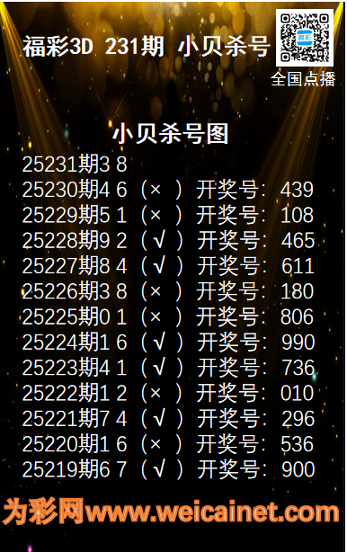 下一篇:福彩3D25231期分析师小鲨鱼杀号图精选
