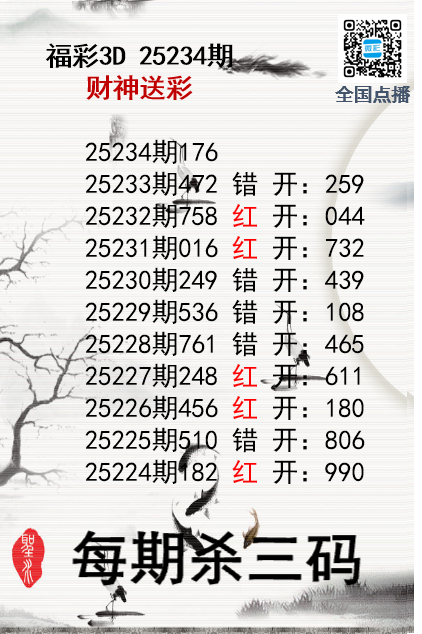 上一篇:福彩3D25234期分析师小鲨鱼杀号图精选