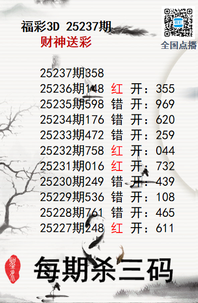 上一篇:福彩3D25237期分析师小鲨鱼杀号图精选