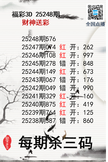 上一篇:福彩3D25248期分析师小鲨鱼杀号图精选