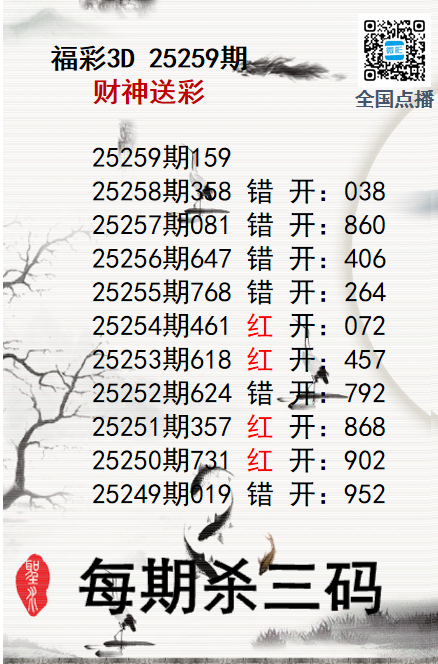 上一篇:福彩3D25259期分析师小鲨鱼杀号图精选