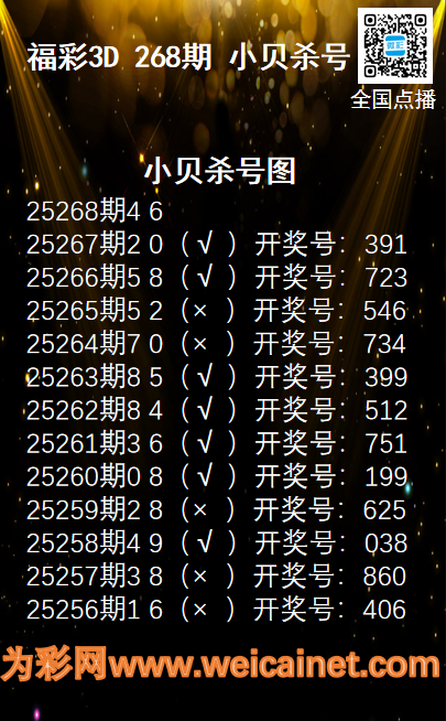 上一篇:福彩3D25267期财神送彩杀三码
