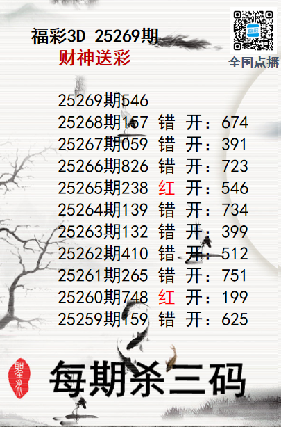 上一篇:福彩3D25269期分析师小鲨鱼杀号图精选
