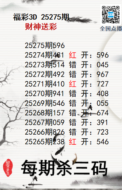 上一篇:福彩3D25275期分析师小鲨鱼杀号图精选