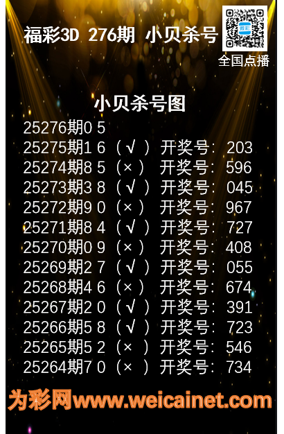 下一篇:福彩3D25276期分析师小鲨鱼杀号图精选