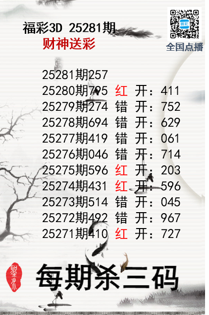 上一篇:福彩3D25281期分析师小鲨鱼杀号图精选