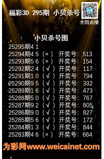 下一篇:福彩3D25295期分析师小鲨鱼杀号图精选