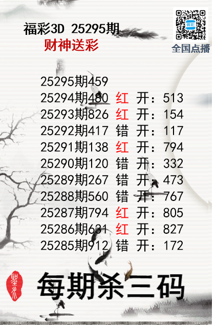 上一篇:福彩3D25295期分析师小鲨鱼杀号图精选