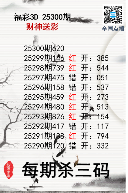 上一篇:福彩3D25300期分析师小鲨鱼杀号图精选
