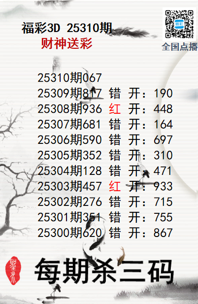 上一篇:福彩3D25310期分析师小鲨鱼杀号图精选
