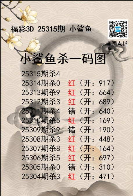 下一篇:福彩3D25315期财神送彩杀三码
