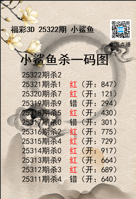 上一篇:福彩3D25322期码师小贝杀号图精选