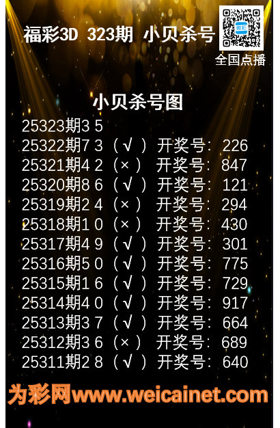 上一篇:福彩3D25322期财神送彩杀三码