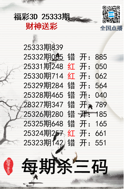 上一篇:福彩3D25333期分析师小鲨鱼杀号图精选
