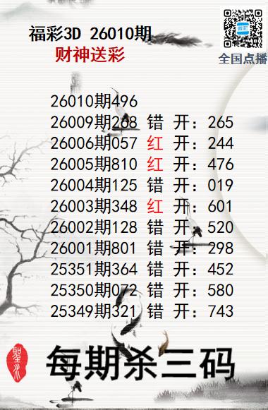 上一篇:福彩3D26010期分析师小鲨鱼杀号图精