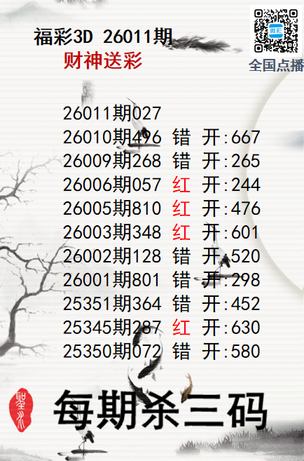 下一篇:福彩3D26011期分析师小鲨鱼杀号图精
