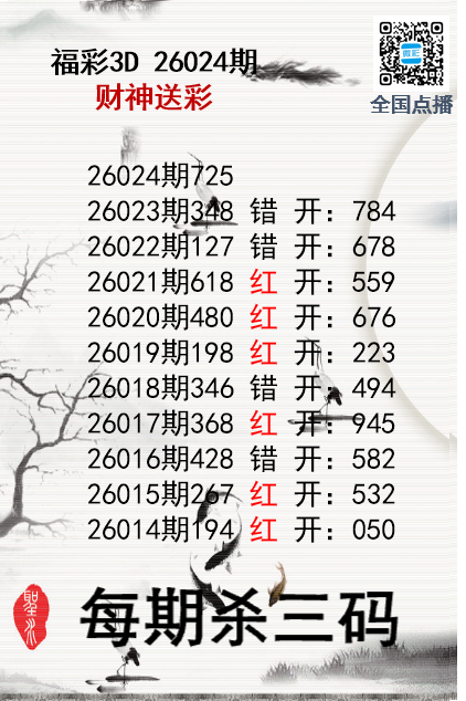 上一篇:福彩3D26024期分析师小鲨鱼杀号图精选