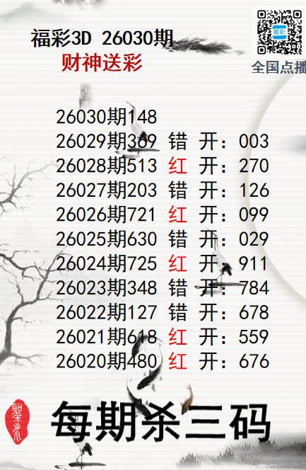 上一篇:福彩3D26030期分析师小鲨鱼杀号图精选