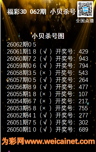 上一篇:福彩3D26061期财神送彩杀三码