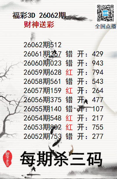 上一篇:福彩3D26062期分析师小鲨鱼杀号图精选