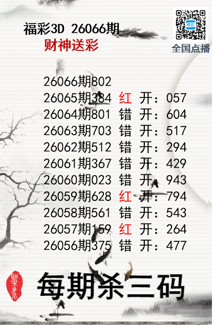 上一篇:福彩3D26066期分析师小鲨鱼杀号图精选