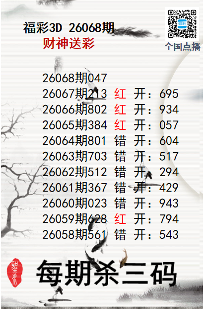 上一篇:福彩3D26068期分析师小鲨鱼杀号图精选