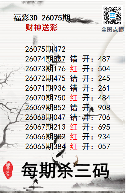上一篇:福彩3D26075期分析师小鲨鱼杀号图精选