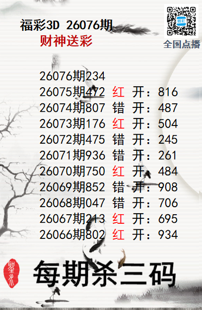 上一篇:福彩3D26076期分析师小鲨鱼杀号图精选
