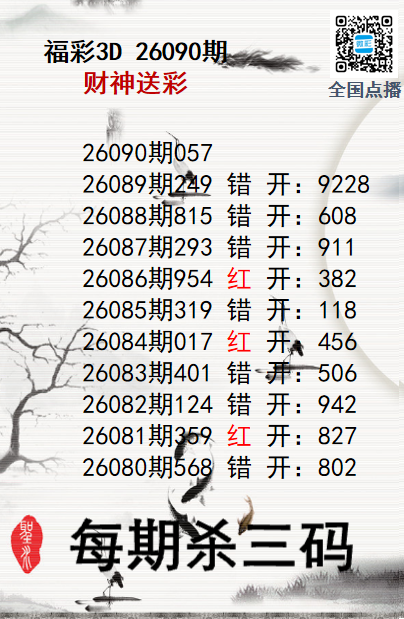 上一篇:福彩3D26090期分析师小鲨鱼杀号图精选