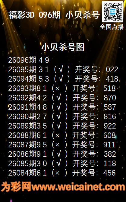 下一篇:福彩3D26096期分析师小鲨鱼杀号图精选