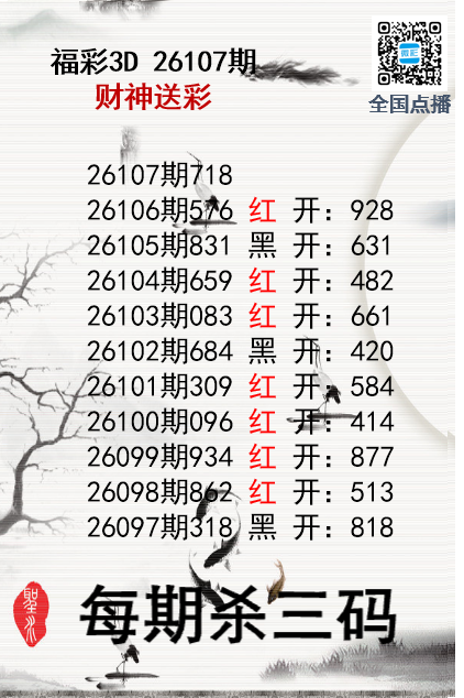 上一篇:福彩3D26107期分析师小鲨鱼杀号图精选