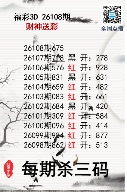 上一篇:福彩3D26108期分析师小鲨鱼杀号图精选