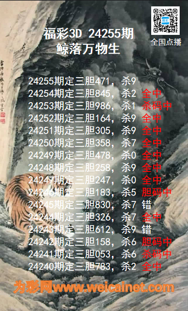 上一篇:福彩3D24255期龙虎斗胆码 杀码图