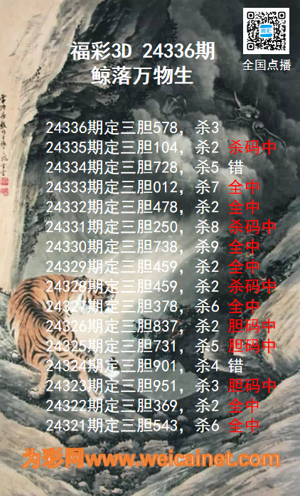 下一篇:福彩3D24337期龙虎斗胆码 杀码图