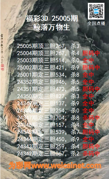 下一篇:福彩3D25006期龙虎斗胆码 杀码图