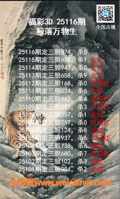 上一篇:福彩3D25116期龙虎斗胆码 杀码图