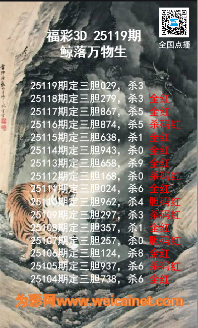 上一篇:福彩3D25119期龙虎斗胆码 杀码图
