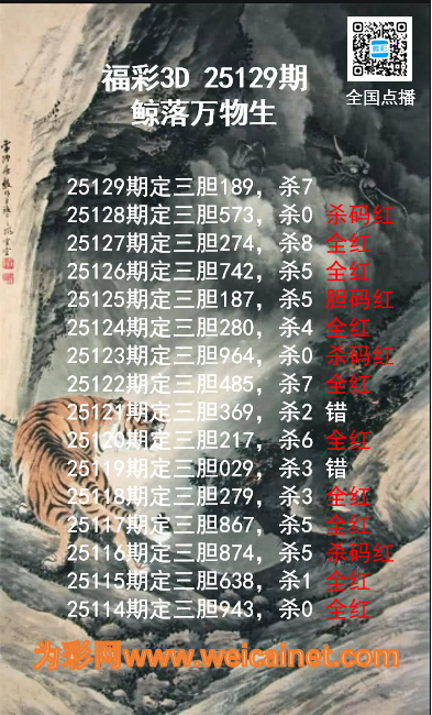 上一篇:福彩3D25129期龙虎斗胆码 杀码图