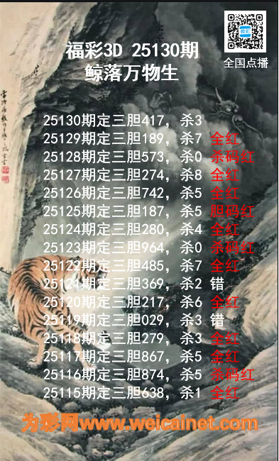上一篇:福彩3D25130期龙虎斗胆码 杀码图