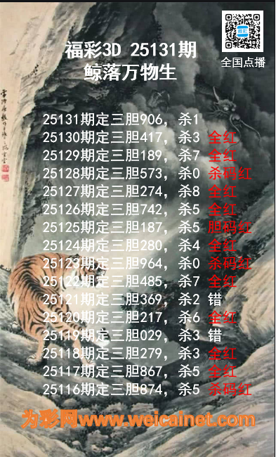 上一篇:福彩3D25131期龙虎斗胆码 杀码图