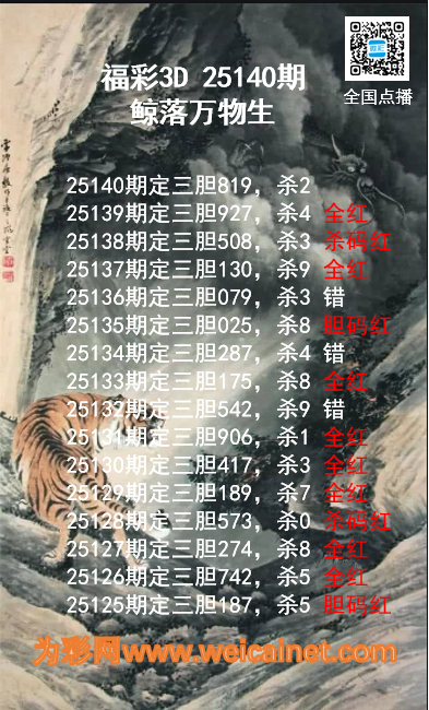 上一篇:福彩3D25140期龙虎斗胆码 杀码图